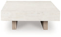 This coffee table is proof positive that sleek, contemporary styling can suit busy lifestyles. Its substantial cement-look top is perched on a textural gray base for an elevated mixed-material look. Don’t want to sacrifice function for fashionable flair? The table's MEGA-TUFF® melamine provides must-have durability and cleanability, resisting stains, scratches, heat and water.
