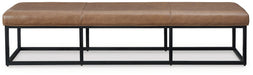 This accent bench takes a contemporary approach to everyday function. Showcasing a sleek combo of caramel leather upholstery and a black frame, it's a chic and convenient seating solution. Place this bench by the entryway, or at the foot of your bed, as a spot for slipping on shoes or resting bags and purses.