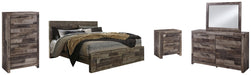 Derekson King Panel Bed with 2 Storage Drawers with Mirrored Dresser, Chest and Nightstand