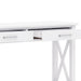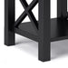 - Features one large drawer with metal drawer glides and an open bottom shelf providing ample storage space.