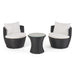 Kono - Outdoor 3 Pieces Chat Set With Cushions And Tempered Glass Tabletop - Black / Ivory