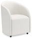 This fully upholstered desk chair makes a lasting impression in a simply stunning way. Its magnificent curves are enhanced with a neutral boucle upholstery that’s so pleasing to the eye. This bucket chair is the piece you’ve been looking for to elevate your contemporary home office. Plus, it’s set on casters so it’s easy to move around.