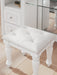 Fit for a princess. This vanity stool’s crisp matte white finish pairs with charming elements like turned legs, ornate beading and sumptuous button-tufted upholstery—perfect for your girly girl. This piece's crowning touches are sure to make your little one feel like royalty.