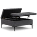 - Features a split lift-up top with child safety hinges and two (2) storage compartments.