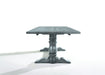 - Striking Trestle Base: The trestle base includes double turned empire pedestals, providing stability and a visually striking element that complements the weathered finish, adding to the table's overall aesthetic.
