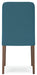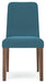 A refreshed take on retro aesthetics. This side chair adds an air of playful simplicity to your dining space, capturing the architectural language of mid-century stylings. The seat invites the eye with a soft-edged silhouette and chic blue cushion. A casual, yet timeless, finish on the frame creates visual contrast to complete this study in form and function.