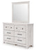 Looking to create a bedroom that feels airy and beautifully put together? This casually comfy dresser with mirror is your perfect solution. Its clean lines, whitewash finish and replicated pine grain exude a charming cottage-inspired feel that brightens your restful retreat. Spacious drawers with dark bronze-tone hardware stow away clothes and more. Now there’s a fresh take on country living we can get behind.
