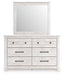 | Details | Includes dresser and mirror, Made with engineered wood (MDF/particleboard/plywood) and decorative laminate for the right balance of affordability and durability, Whitewash replicated worn through paint over replicated wood grain with authentic touch, Decorative laminate replicates natural or man-made material surfaces with consistent color, pattern and texture, Hardware with dark bronze-tone finish, 6 smooth-gliding drawers, Mirror attaches to back of dresser; can also be mounted on wall vertically, Safety is a top priority, clothing storage units are designed to meet the most current standard for stability, ASTM F 2057 (ASTM International), Drawers extend out to accommodate maximum access to drawer interior while maintaining safety, Minor assembly required | |