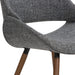 - Mid Century Modern styling includes comfortable curved padded seat and seat back, walnut veneer on bentwood frame and angled legs