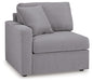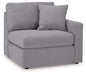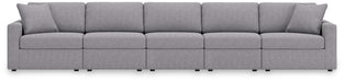 Details Includes 5 modular pieces: left-arm facing corner chair, 3 armless chairs and right-arm facing corner chair, "Left-arm" and "right-arm" describe the position of the arm when you face the piece, Modular pieces can float anywhere; sides are finished (with no connectors), Corner-blocked frame; reversible seat and back cushions; high-quality foam cushions wrapped in poly fiber, Throw pillows included; soft polyfill, Polyester upholstery, Next-Gen Nuvella™ is a family-friendly fabric that is soft, easy to clean, stain-resistant and durable, Easy-to-remove zippered covers for machine washing, Clean fabric with mild soap and water, let air dry; for stubborn stains, use a solution of 4 oz. bleach to 28 oz. water, Non-skid legs, Platform foundation system resists sagging 3x better than spring system after 20,000 testing cycles by providing more even support, Smooth platform foundation maintains tight, wrinkle-free look without dips or sags that can occur over time with sinuous spring foundations