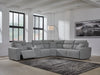 | Details | Includes 6 modular pieces: left-arm facing power recliner, 2 armless chairs, console, wedge and right-arm facing power recliner, "Left-arm" and "right-arm" describe the position of the arm when you face the piece, Versatile modular pieces fit together in a variety of configurations, One-touch power control with adjustable positions, Easy View™ adjustable headrest and zero-draw USB port, Zero-draw technology only consumes power when the USB receptacle is in use, Corner-blocked frame with metal reinforced seat, Attached back and seat cushions; high-quality foam cushions wrapped in poly fiber, Polyester upholstery; Next-Gen Nuvella™ is a family-friendly fabric that is soft, easy to clean, stain-resistant and durable, Clean fabric with mild soap and water, let air dry; for stubborn stains, use a solution of 4 oz. bleach to 28 oz. water, Throw pillows with easy-to-remove zippered covers for machine washing; pillows with soft polyfill, Console with plexiglass top and 2 cup holders, Zero wall recliner design requires minimal space between wall and chair back, Power cord included; UL Listed | |