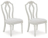 | Details | Made with solid wood frame and cast resin components, Antiqued white finish, Polyester upholstery, Foam cushioned seat, Includes adjustable levelers, Assembly required | |