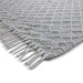 - Detailed with a diamond pattern invory and teal featuring a hand-knotted fringe