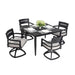 7 Piece Outdoor Patio Furniture, Modern Dining Set, 6 Swivel Chairs Rockers Sunbrella Fabric And Rectangle Dining Table With Umbrella Hole - Ember Black