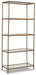 | Details | Made with sand casted aluminum, Antiqued brass-tone finish, Clear glass shelves, 5 shelves, Assembly required | |