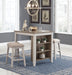 | Details | Includes counter height table and 2 bar stools, Made of wood, acacia veneer and engineered wood, Distressed grayish white finish, Cushioned seat with polyester upholstery, 3 open shelves, Assembly required | |