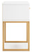 | Details | Made with engineered wood (MDF/particleboard/plywood) and decorative laminate for the right balance of affordability and durability, Decorative laminate replicates natural or man-made material surfaces with consistent color, pattern and texture, Matte white finish, Drawer pulls with goldtone finish, Metal legs with goldtone finish, Smooth-gliding drawer with vinyl-wrapped sides and back for durability, Assembly required | |