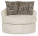 Flaunting a trendsetting silhouette, this swivel accent chair puts the contemporary in your contemporary home. Its 360-degree swivel gives you an around-the-room view to complement your comfort. And the chunky chenille fabric satisfies your need for a piece that feels as good as it looks. Soft jacquard chenille throw pillows add a splash of geometric pattern and color contrast.
