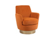 Velvet Swivel Barrel Chair, Swivel Accent Chairs Armchair For Living Room, Reading Chairs For Bedroom Comfy, Round Barrel Chairs With Stainless Steel Base - Orange / Gold