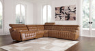 | Details | Includes 5 pieces: left-arm facing power recliner, power armless recliner, wedge, armless chair and right-arm facing power recliner, "Left-arm" and "right-arm" describe the position of the arm when you face the piece, One-touch power control with adjustable positions, USB-C fast charging and zero-draw USB port, Zero-draw technology only consumes power when the USB receptacle is in use, Zero-gravity mechanism allows optimum reclining comfort with infinite reclining positions at the touch of a button, Corner-blocked frame with metal reinforced seats, Attached cushions, High-quality foam cushions wrapped in poly fiber, 100% top grain leather covers inside areas such as the back, seat and arm cushions; skillfully matched faux leather covers the remaining areas, Due to its natural origin, real leather can show individual characteristics such as healed scars, growth marks, grain variation and shade variation, Natural variations make each hide unique and do not detract from the wearing qualities of leather, Easy View™ manual adjustable headrest, Zero wall recliner design requires minimal space between wall and chair back | |