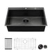 30" Single Bowl Topmount Kitchen Sink 16 Gauge Stainless Steel - Gunmetal Black