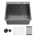 28 X 22" Drop In Kitchen Sink With 16 Gauge Stainless Steel And Deep Single Bowl - Gunmetal Black