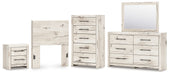 Details B2310-53: Made with engineered wood (MDF/particleboard/plywood) and decorative laminate for the right balance of affordability and durability, Rustic white finish over replicated reclaimed oak grain with authentic touch, Decorative laminate replicates natural or man-made material surfaces with consistent color, pattern and texture, ¼" bolts (not included) are needed to attach headboard to your existing bed frame, Minor assembly required, B2310B1: Made with engineered wood (MDF/particleboard/plywood) and decorative laminate for the right balance of affordability and durability, Rustic white finish over replicated reclaimed oak grain with authentic touch, Decorative laminate replicates natural or man-made material surfaces with consistent color, pattern and texture, Handles with dark pewter-tone finish, 6 smooth-gliding drawers, Drawer interiors are lined with a faux linen laminate for a clean, finished look, Framed front and pilasters, Safety is a top priority, clothing storage units are designed to meet the most current standard for stability, ASTM F 2057 (ASTM International), Drawers extend out to accommodate maximum access to drawer interior while maintaining safety, Mirror attaches to back of dresser; can also be mounted on wall horizontally or vertically , Minor assembly required, B2310-46: Made with engineered wood (MDF/particleboard/plywood) and decorative laminate for the right balance of affordability and durability, Rustic white finish over replicated reclaimed oak grain with authentic touch, Decorative laminate replicates natural or man-made material surfaces with consistent color, pattern and texture, Handles with dark pewter-tone finish, 5 smooth-gliding drawers, Drawer interiors are lined with a faux linen laminate for a clean, finished look, Framed front and pilasters, Safety is a top priority, clothing storage units are designed to meet the most current standard for stability, ASTM F 2057 (ASTM International), Drawers extend out to accommodate maximum access to drawer interior while maintaining safety, Minor assembly required, B2310-92: Made with engineered wood (MDF/particleboard/plywood) and decorative laminate for the right balance of affordability and durability, Rustic white finish over replicated reclaimed oak grain with authentic touch, Decorative laminate replicates natural or man-made material surfaces with consistent color, pattern and texture, Handles with dark pewter-tone finish, 2 smooth-gliding drawers, Drawer interiors are lined with a faux linen laminate for a clean, finished look, Framed front and pilasters, 2 slim-profile USB charging ports, Power cord included; UL Listed, Minor assembly required,