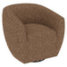 • The Vega swivel chair brings together smooth movement with sculptural comfort. This barrel-back design makes a subtle statement in textured, multi-toned fabric—boucle-inspired and artisan-woven, with creamy threads layered into warm spice or slate blue yarns. Featuring a sinuous spring seat and supportive foam cushioning, the compact footprint of this accent chair works anywhere from reading corners to bedroom nooks. Whether paired with modern lines or vintage finds, this swivel accent chair brings adaptable style with a cozy, collected feel..
