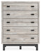 | Details | Made with engineered wood (MDF/particleboard/plywood) and decorative laminate for the right balance of affordability and durability, Light gray finish over a replicated oak grain with authentic touch; base has matte black finish with subtle replicated wood grain, Decorative laminate replicates natural or man-made material surfaces with consistent color, pattern and texture, Base has matte black finish with subtle replicated wood grain, Handles with matte black finish, 5 smooth-gliding drawers, Drawer interiors are lined with a faux linen laminate for a clean, finished look, Safety is a top priority, clothing storage units are designed to meet the most current standard for stability, ASTM F 2057 (ASTM International), Drawers extend out to accommodate maximum access to drawer interior while maintaining safety, Assembly required | |
