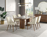 - Luxurious Ceramic Top: The dining table features a luxurious ceramic top with a warm walnut finish, perfectly blending contemporary and natural elements to elevate any dining space.