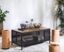 - Functional Storage: The table includes a compartment equipped with four metal sliding doors, providing organized storage space to keep your living room tidy and clutter-free.