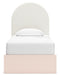 Pretty in pink. This twin upholstered panel bed with storage keeps the spirit of your home’s modern aesthetic while suiting all your young one’s needs. Its cozy-cute upholstery and subtle blush finish bring a playful, charming vibe to bedtime. Made for her and styled for you, it’s a lovely addition to a beautifully chic child’s bedroom.