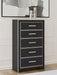 | Details | Made with engineered wood (MDF/particleboard/plywood) and decorative laminate for the right balance of affordability and durability, Matte black finish with subtle replicated wood grain, Decorative laminate replicates natural or man-made material surfaces with consistent color, pattern and texture, Chrome-tone accents, Large-scale chrome-tone handles with faceted details, 5 smooth-gliding drawers, Drawer interiors are lined with a faux linen laminate for a clean, finished look, Safety is a top priority, clothing storage units are designed to meet the most current standard for stability, ASTM F 2057 (ASTM International), Drawers extend out to accommodate maximum access to drawer interior while maintaining safety, Minor assembly required | |